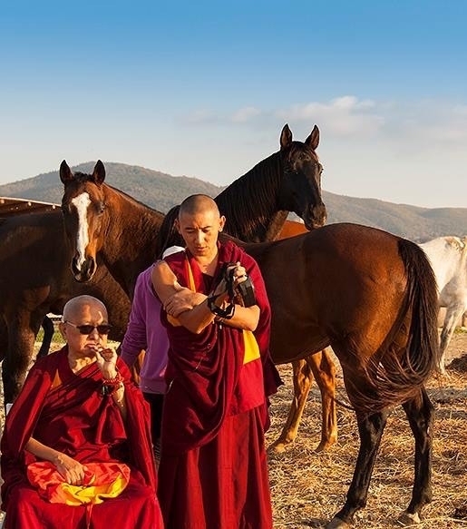 - 圖7:攝於義大利宗喀巴中心附近的馬場(near Lama Tsongkhapa Institute, Italy),仁波切在加持他們。