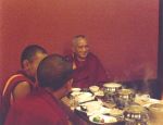又有一次,仁波切與中心的義工聚餐。當時妙喜法師帶著我去向仁波切獻哈達,並詢問仁波切關於我的出家因緣。仁波切回答說:「什麼時候都可以。」我聽後心想:「那就之後再說吧。」