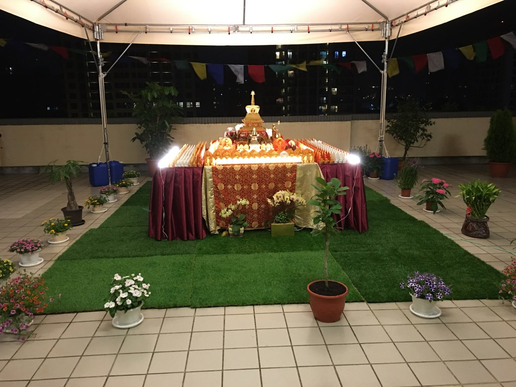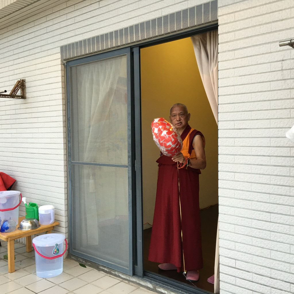 - 圖5:2016年梭巴仁波切在台中釋迦牟尼佛中心,將有寫上咒語的汽球放在五樓的陽台。