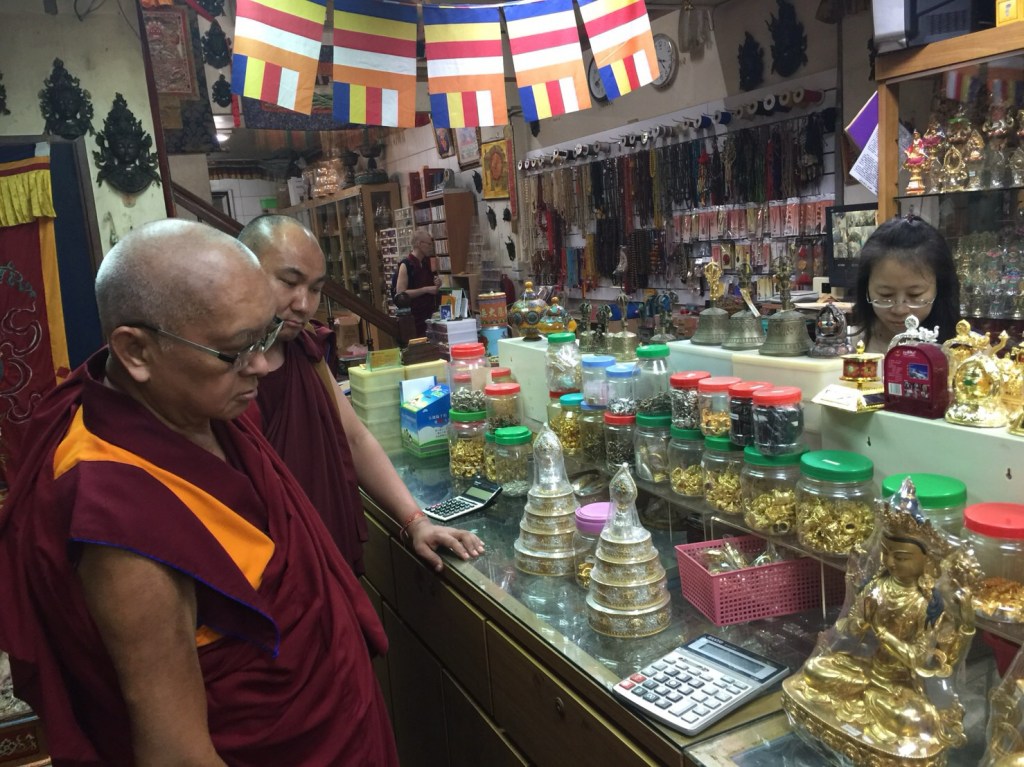 - 圖6:梭巴仁波切在佛教文物店選購聖物。