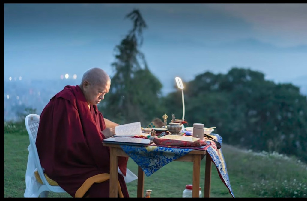 - 圖1:非常感謝仁波切(編按:此為仁波切於戶外閱讀的身影。)